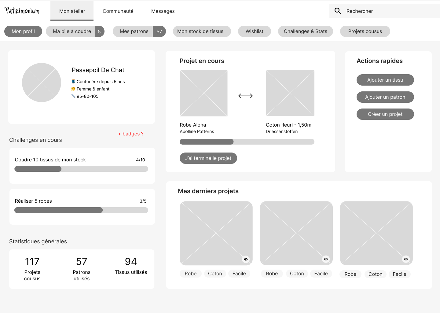 - Proposer une expérience fluide et visuelle sur ordinateur comme sur mobile, adaptée aux besoins spécifiques de la couture amateur ou passionnée.